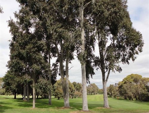 ![]() | MAIN ROADS OR PARKS ONLY Smooth-barked Apple Angophora costata An evergreen native tree with peeling salmon pink to pale grey bark. Small white flowers are borne in mass in spring, leading to small gum nuts that are not problematic for lawnmowers. As this tree grows to 18m in height it is suitable only for parks and open spaces or main roads. |
