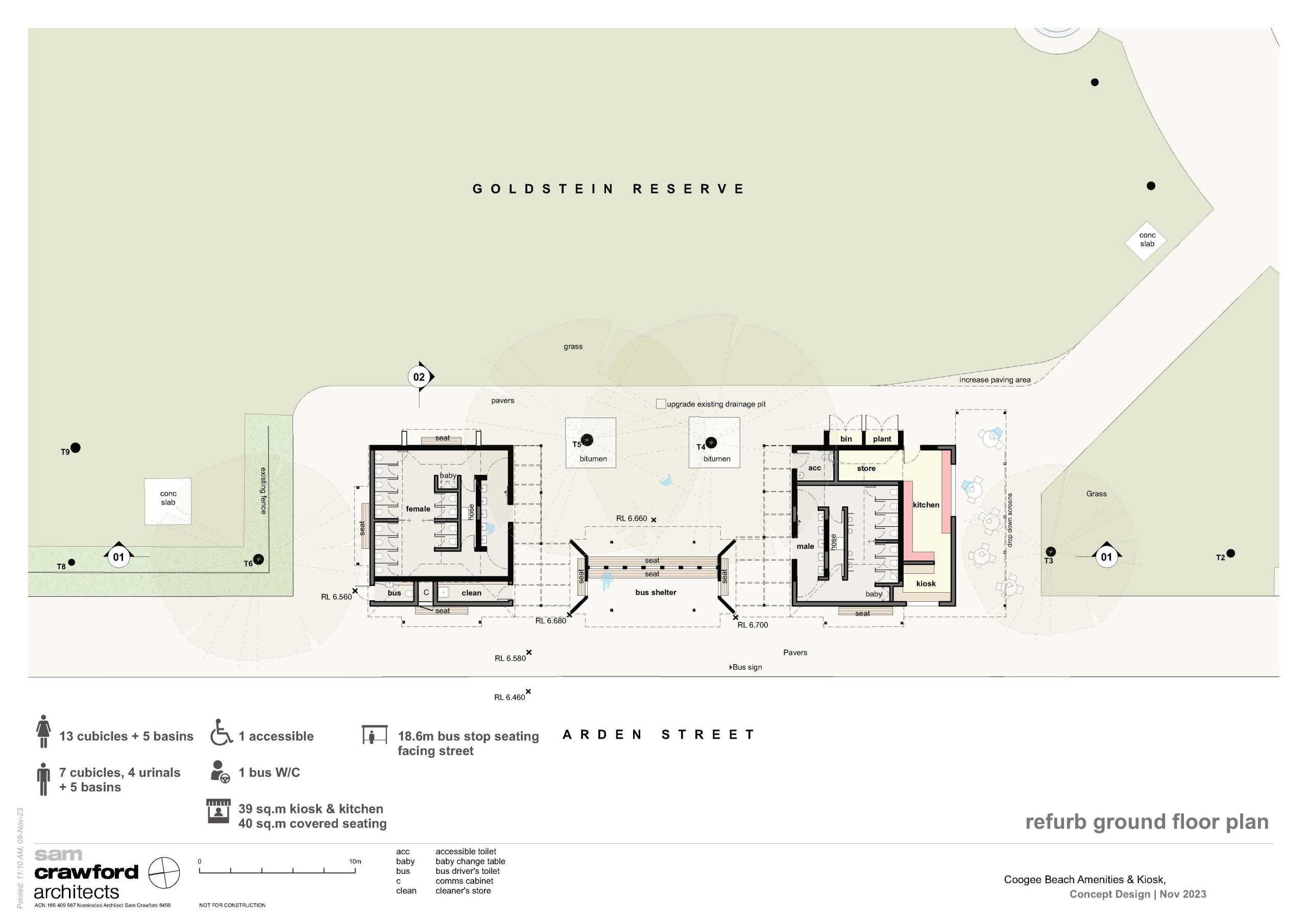 Randwick City Council is planning to replace the public amenities, bus shelter and café/kiosk at Goldstein Reserve on Arden Street, Coogee Beach.