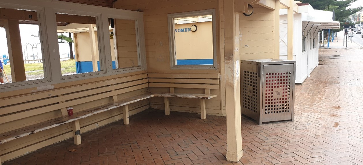 - Removes existing showers to make room for more toilets. Note: sufficient showers are located along the beachfront and at the lower promenade amenities
