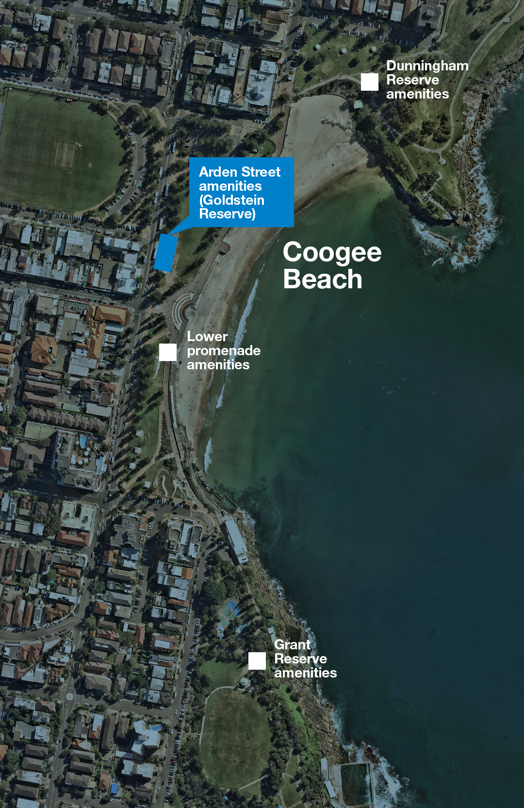 - Dunningham Reserve: North of Coogee Beach. New amenities are currently being planned, with temporary male and female toilets currently at this location.
